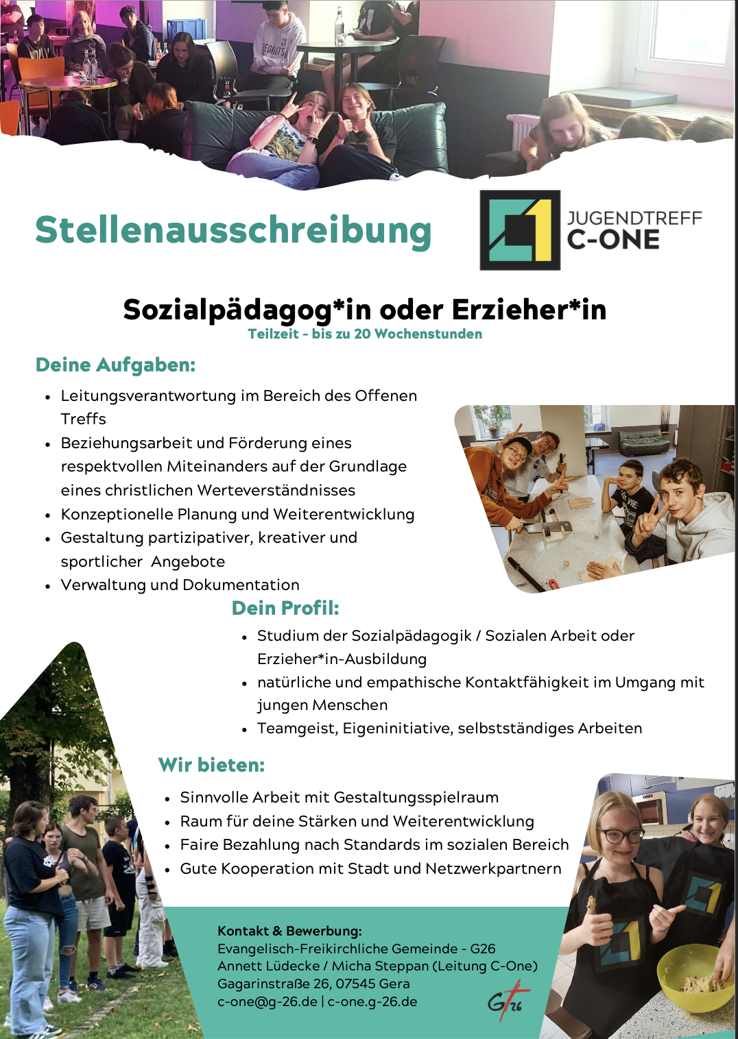 Im letzten Jahr haben wir unser Profil erweitert: Unter dem Namen „Grenzenlos“ ist ein erlebnispädagogisches Angebot für Schulklassen entstanden. Für die Stärkung unseres Offenen Treffs im C-One suchen wir nun engagierte Unterstützung.